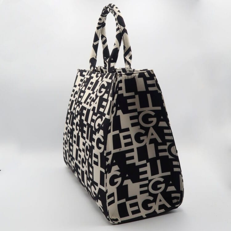 Borsa shopper in canvas logo all over – Nero