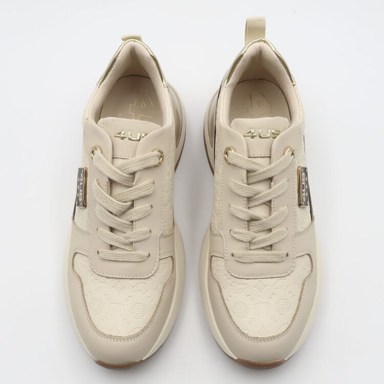 Sneaker con logo metallico – Beige