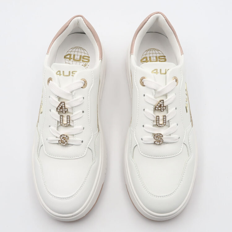 Sneaker con passalacci gioiello – Bianco e rosa